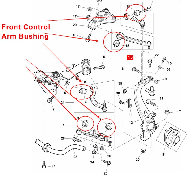 Le remplacement du jeu complet de bagues du bras de commande de suspension avant aide à restaurer les performances d'amortissement de la suspension,
